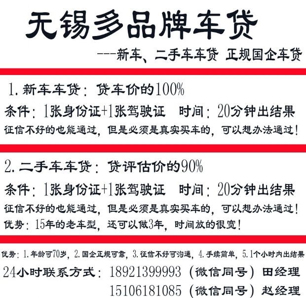 无锡多品牌车贷(新车、二手车都有)
