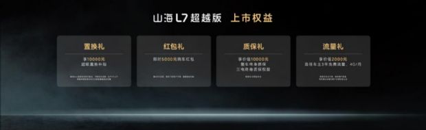 2026款捷途山海L7超越版推出3款车型,官方指导价为11.49万元-12.79万元,上市期间送上4重购车礼遇,限时抢购价9.99万元-11.29万元,助力更多家庭轻松开启向往的电混出行生活。